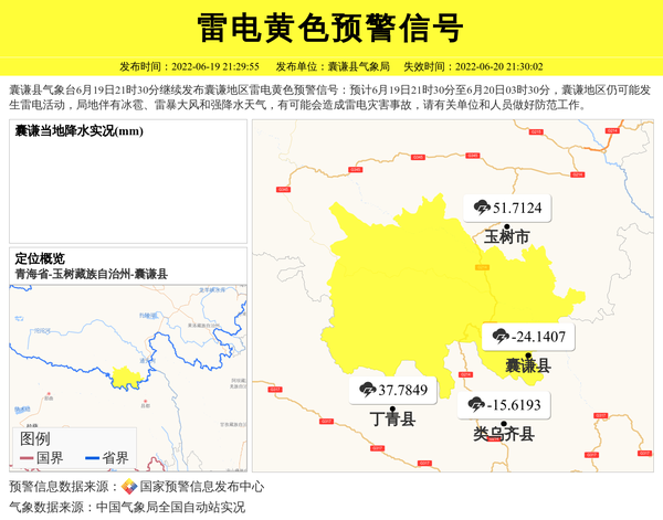 囊谦县气象台确认雷电黄色预警信号 相关文章
