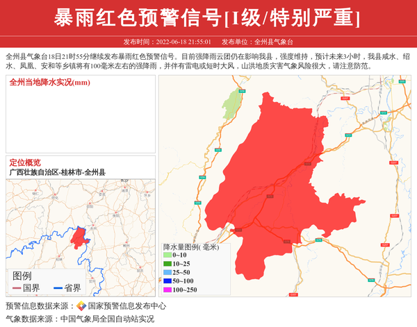 全州县气象台更新暴雨红色预警信号[I级/特别严重] 相关文章