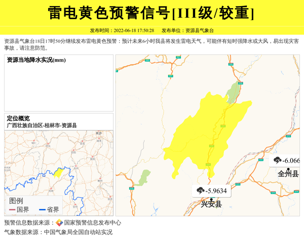 资源县气象台更新雷电黄色预警信号[III级/较重] 相关文章