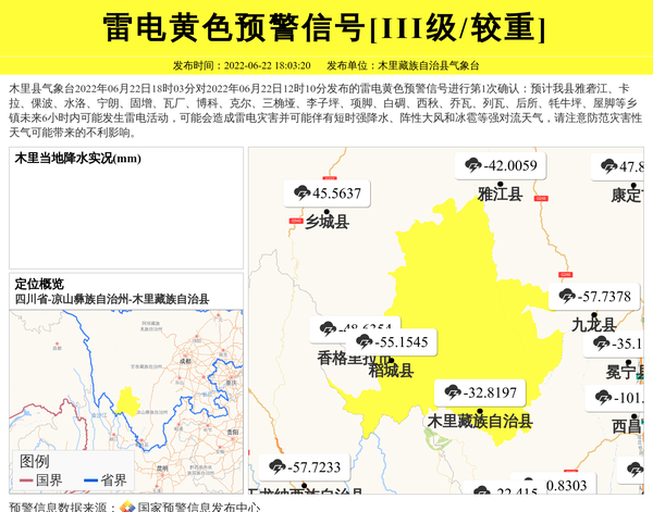 木里藏族自治县气象台更新雷电黄色预警信号[III级/较重] 相关文章
