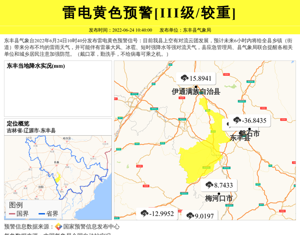 东丰县气象局发布雷电黄色预警[III级/较重] 相关文章