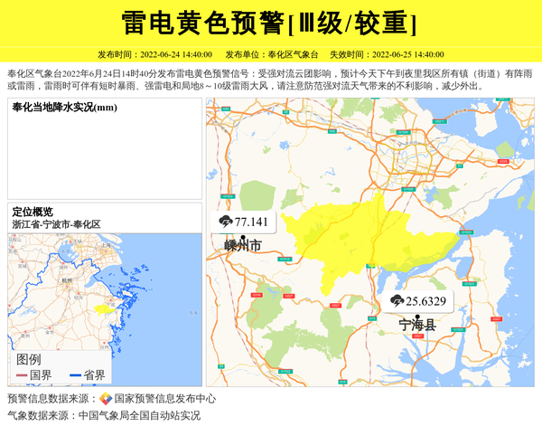 奉化区气象台发布雷电黄色预警[Ⅲ级/较重]