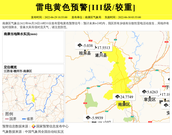 南康区气象台发布雷电黄色预警[III级/较重] 相关文章