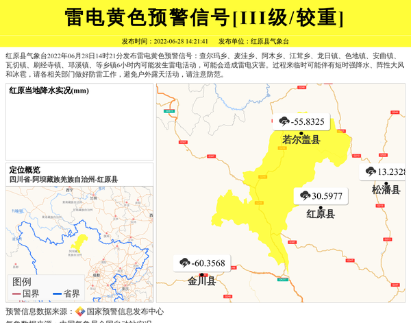 红原县气象台发布雷电黄色预警信号[III级/较重] 相关文章