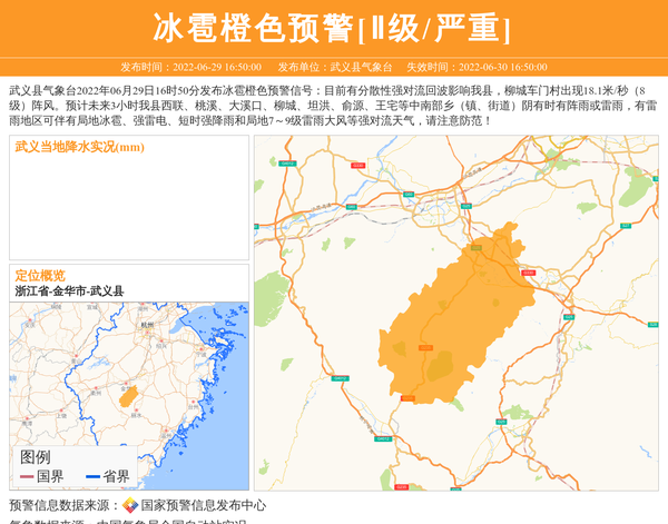 武义县气象台发布冰雹橙色预警[Ⅱ级/严重]