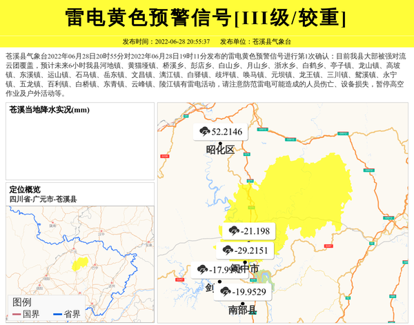 苍溪县气象台更新雷电黄色预警信号[III级/较重] 相关文章