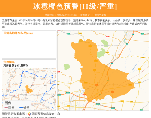 卫辉市气象局发布冰雹橙色预警[II级/严重] 相关文章