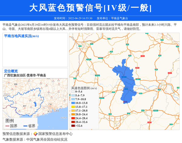 平南县气象台发布大风蓝色预警信号[IV级/一般] 相关文章