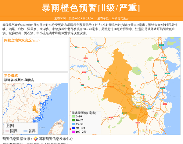 闽侯县气象台发布暴雨橙色预警[Ⅱ级/严重] 相关文章