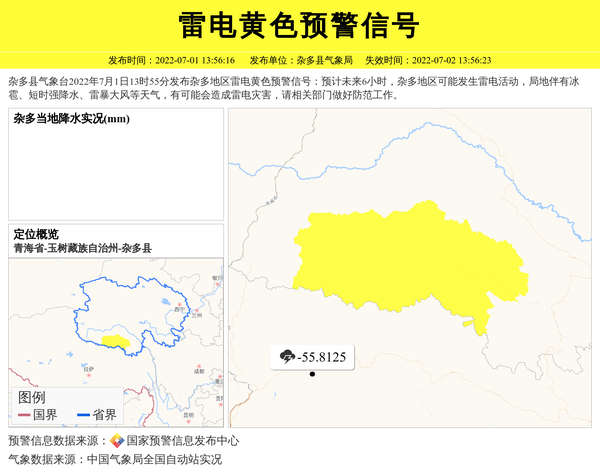 杂多县气象台发布雷电黄色预警信号 相关文章