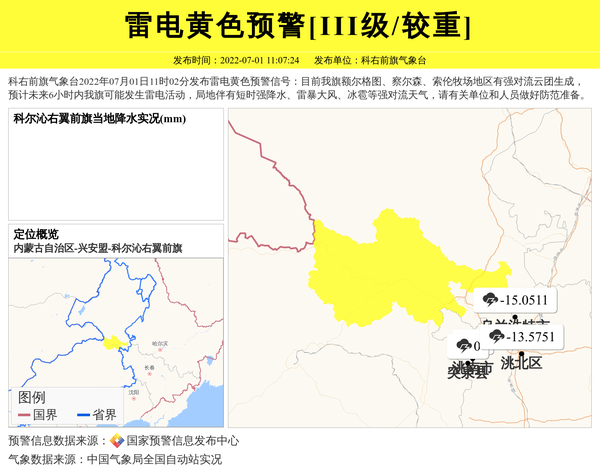 科右前旗气象台发布雷电黄色预警[III级/较重] 相关文章