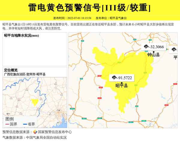 昭平县气象台发布雷电黄色预警信号[III级/较重] 相关文章