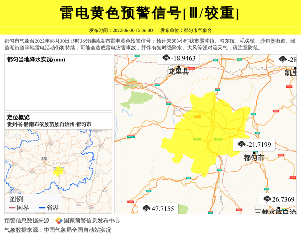 都匀市气象台继续发布雷电黄色预警信号[Ⅲ/较重] 相关文章