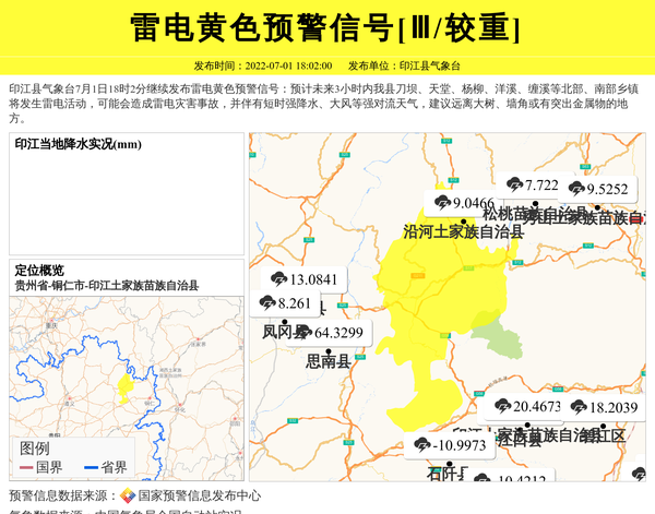 印江县气象台继续发布雷电黄色预警信号[Ⅲ/较重] 相关文章