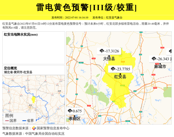 红安县气象台发布雷电黄色预警[III级/较重] 相关文章