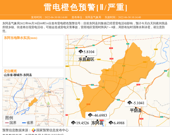 东阿县气象局发布雷电橙色预警[Ⅱ/严重] 相关文章