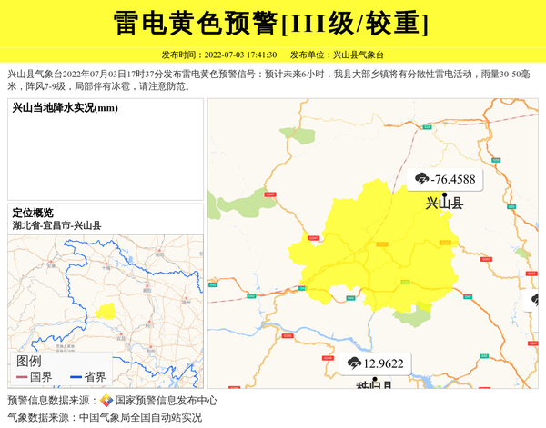 兴山县气象台发布雷电黄色预警[III级/较重] 相关文章