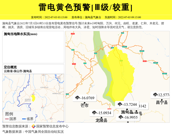 施甸县气象台发布雷电黄色预警[Ⅲ级/较重] 相关文章