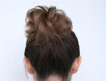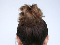 调整发髻的弧度,将头发向外拉花处理。如果头发过于松散可用发夹在四周稍微固定,但为了营造自然随意的效果,不可过分地要求头发服贴。