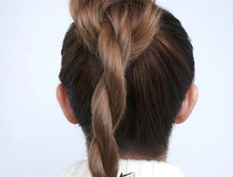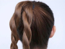 两股辫向上扭转成发髻,即从发尾向上将头发卷至发尾皮筋处。