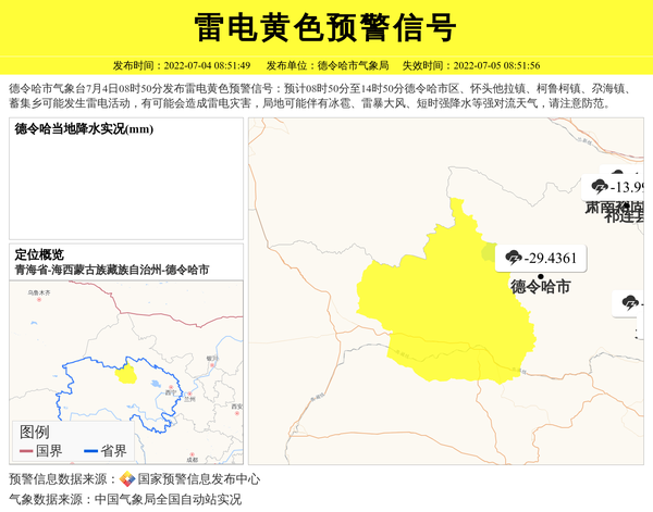 德令哈市气象台发布雷电黄色预警信号 相关文章