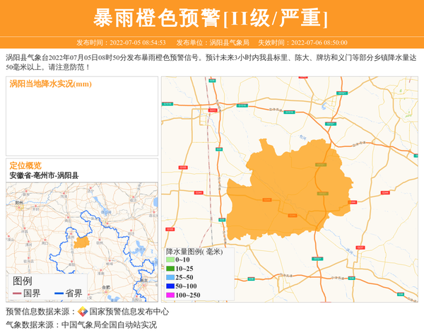 涡阳县气象局发布暴雨橙色预警[II级/严重] 相关文章