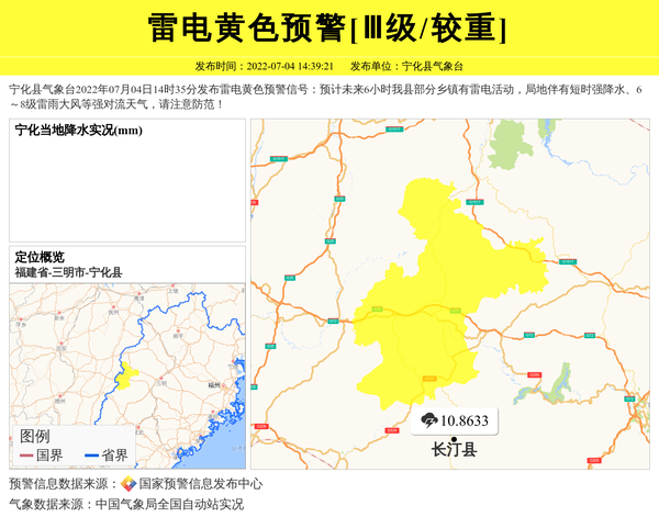 宁化县气象台发布雷电黄色预警[Ⅲ级/较重] 相关文章