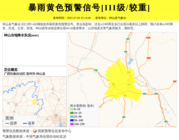 钟山县气象台更新暴雨黄色预警信号[III级/较重] 相关文章