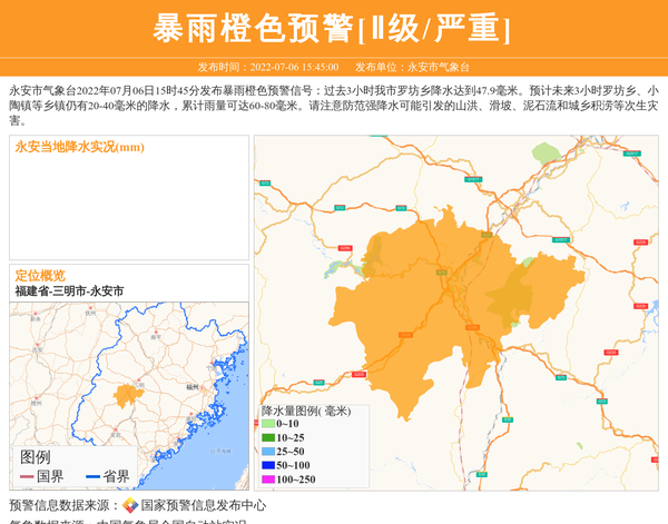 永安市气象台发布暴雨橙色预警[Ⅱ级/严重] 相关文章