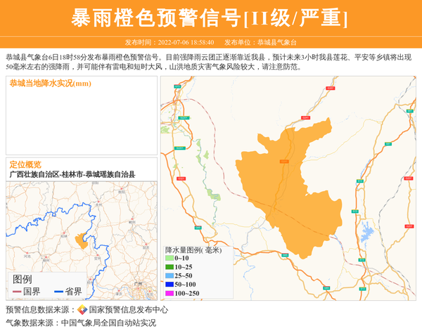 恭城县气象台发布暴雨橙色预警信号[II级/严重]