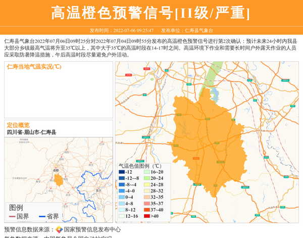 仁寿县气象台更新高温橙色预警信号[II级/严重]