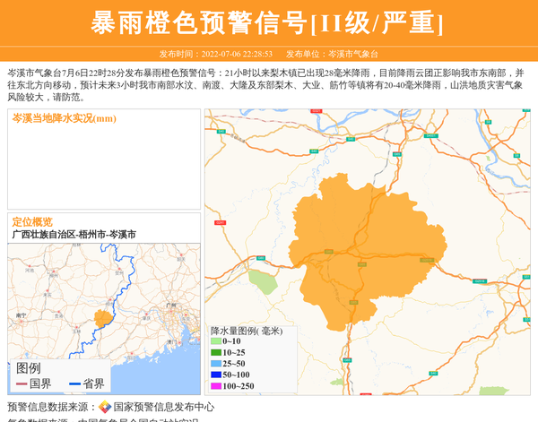 岑溪市气象台发布暴雨橙色预警信号[II级/严重] 相关文章