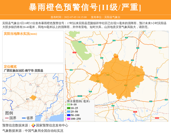 宾阳县气象台发布暴雨橙色预警信号[II级/严重]