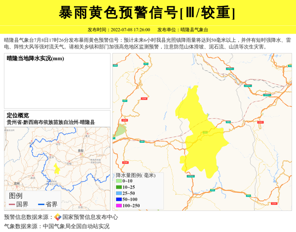 晴隆县气象台发布暴雨黄色预警信号[Ⅲ/较重] 相关文章