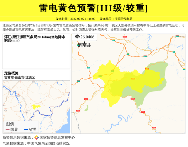 江源区气象局发布雷电黄色预警[III级/较重] 相关文章