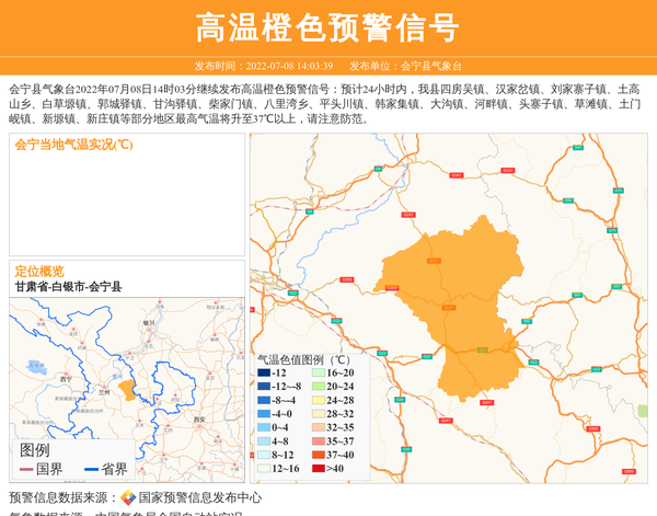会宁县气象台继续发布高温橙色预警信号 相关文章