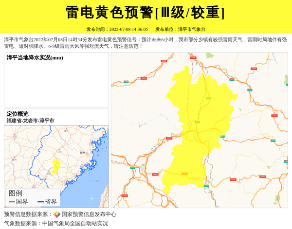 漳平市气象台发布雷电黄色预警[Ⅲ级/较重] 相关文章