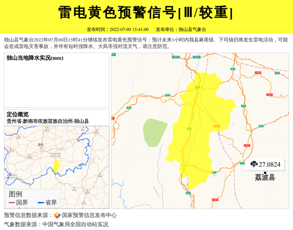 独山县气象台继续发布雷电黄色预警信号[Ⅲ/较重]