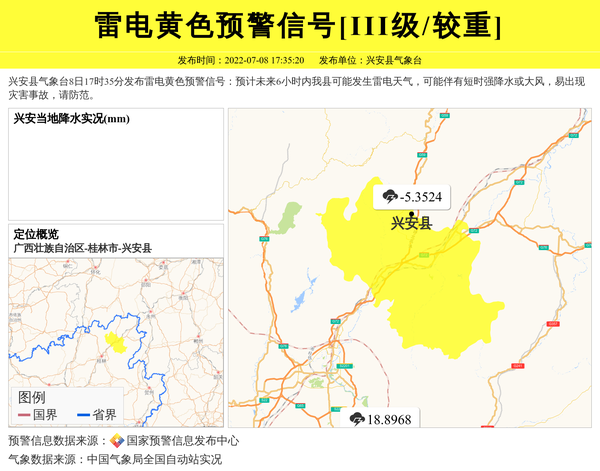 兴安县气象台发布雷电黄色预警信号[III级/较重] 相关文章