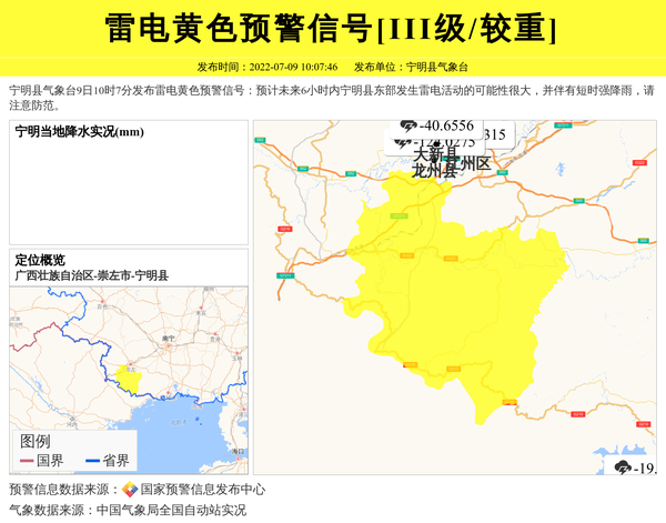 宁明县气象台发布雷电黄色预警信号[III级/较重]
