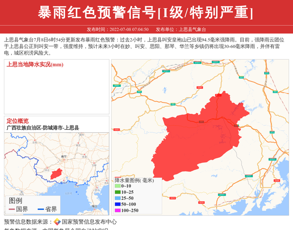 上思县气象台更新暴雨红色预警信号[I级/特别严重] 相关文章