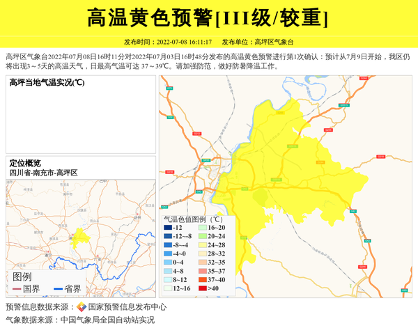 高坪区气象台更新高温黄色预警[III级/较重] 相关文章