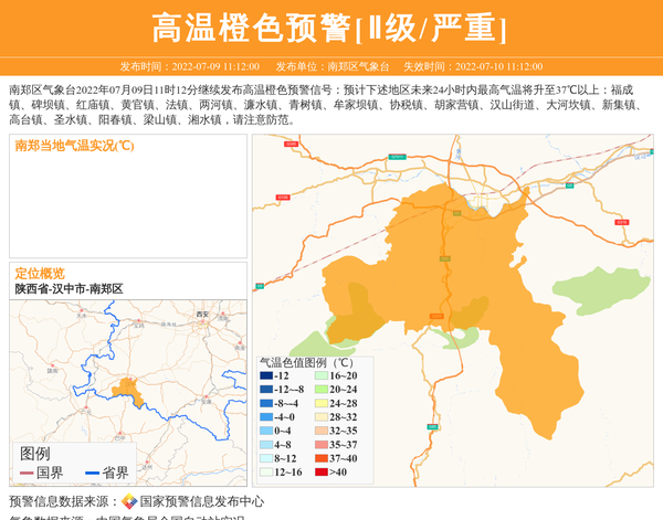 南郑区气象台继续发布高温橙色预警[Ⅱ级/严重]