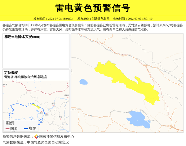 祁连县气象台发布雷电黄色预警信号 相关文章