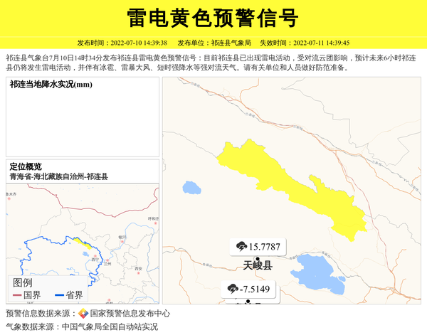 祁连县气象台发布雷电黄色预警信号 相关文章