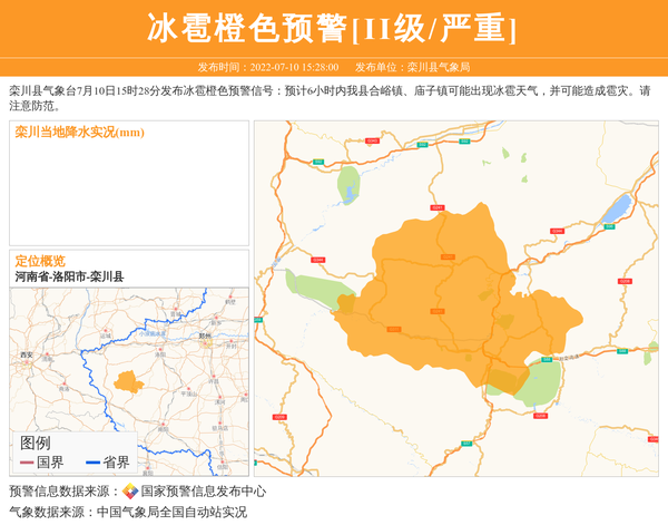 栾川县气象局发布冰雹橙色预警[II级/严重] 相关文章