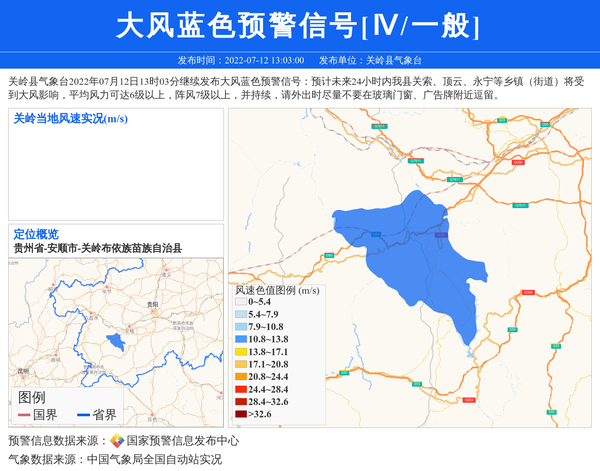 关岭县气象台继续发布大风蓝色预警信号[Ⅳ/一般]