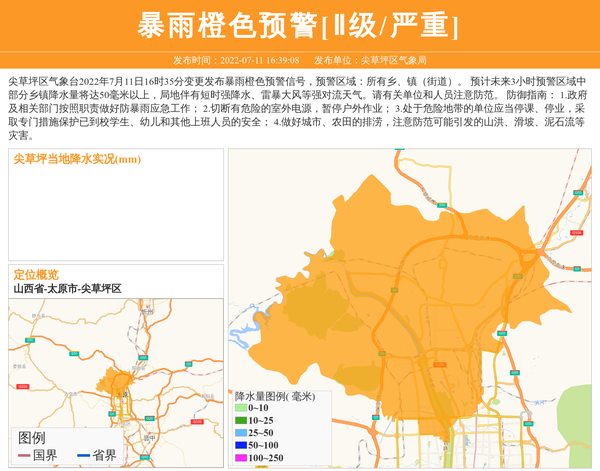 尖草坪区气象局发布暴雨橙色预警[Ⅱ级/严重]
