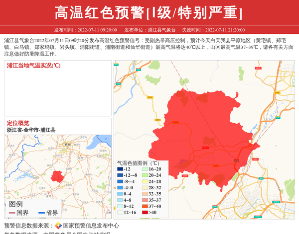 浦江县气象台发布高温红色预警[Ⅰ级/特别严重] 相关文章