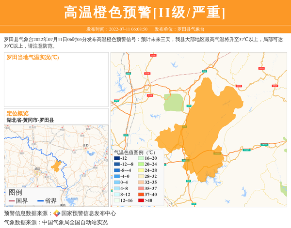 罗田县气象台发布高温橙色预警[II级/严重]